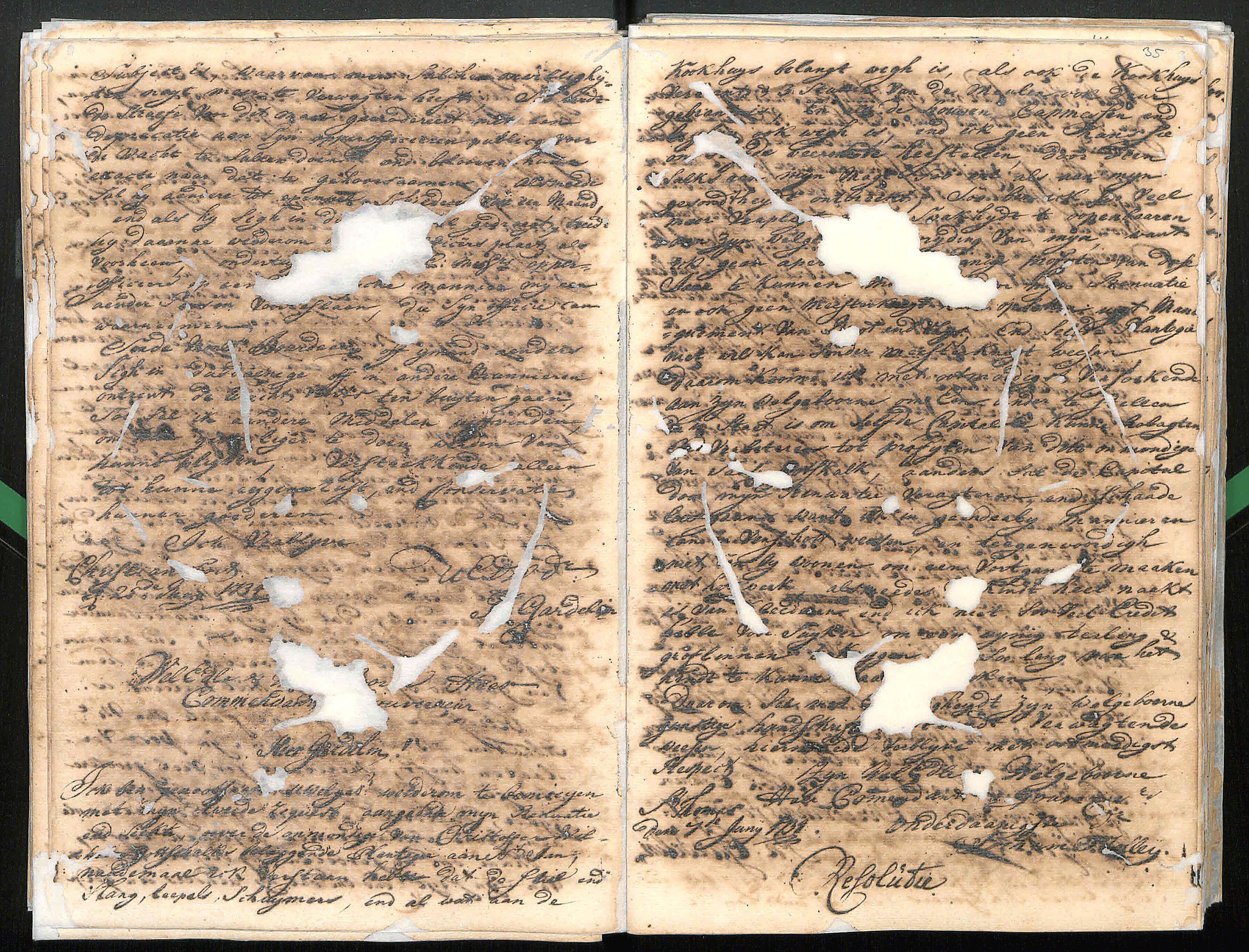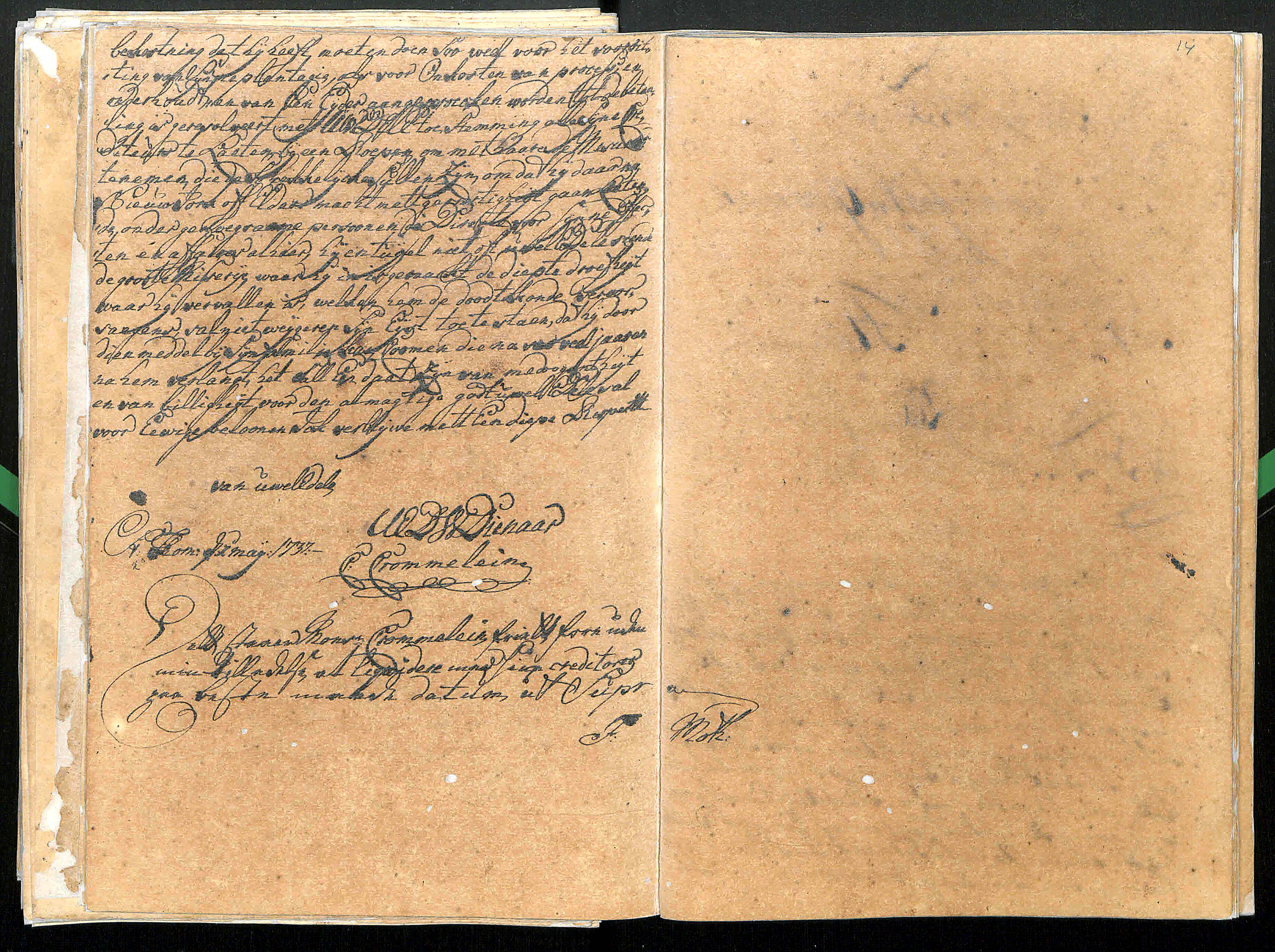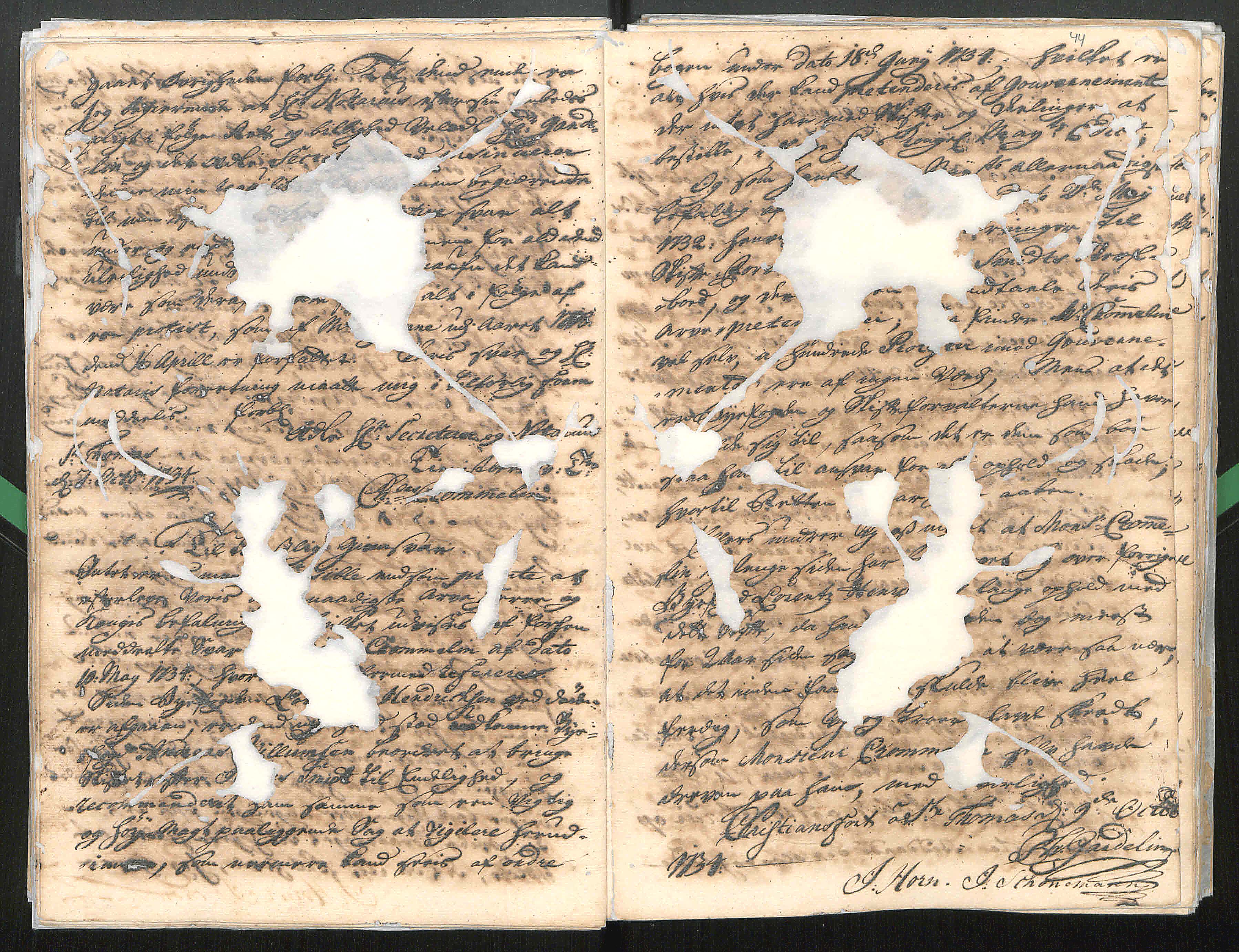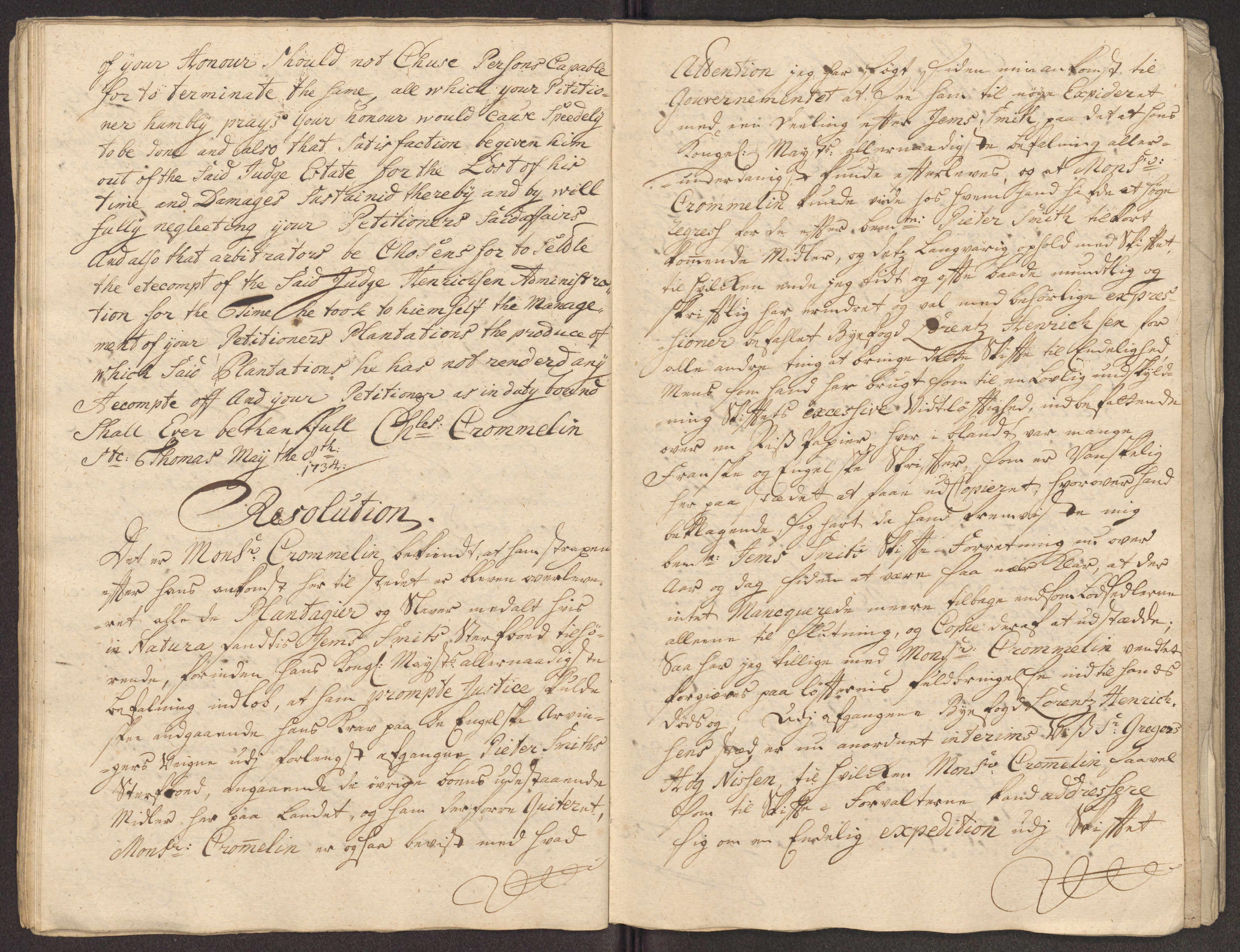 A Mr. Andreas T____________ mentioned. I will try to determine the surname. Few words relating to "Charles Crommelin" can be made out - mostly dates 23 Aug 1735 and so forth.