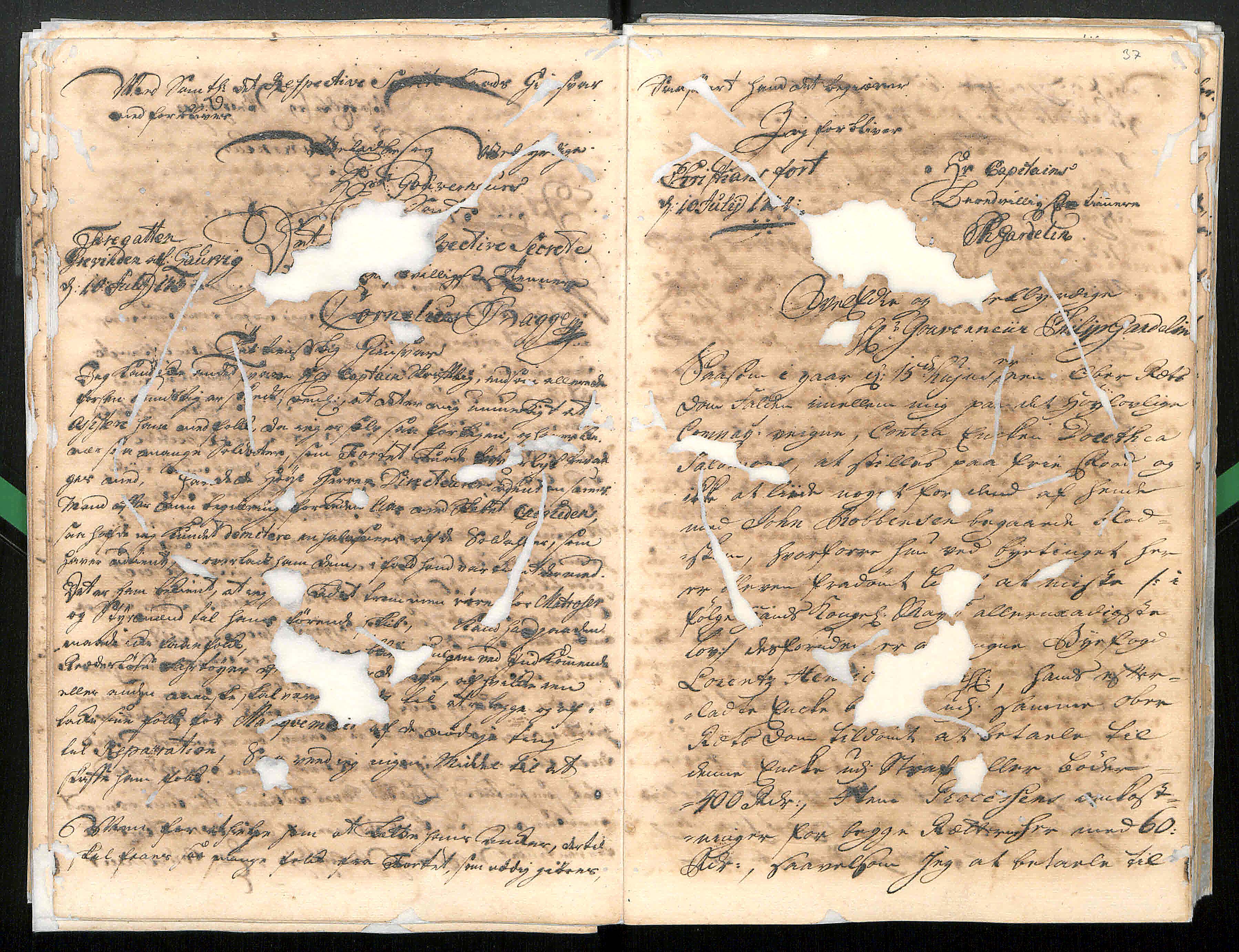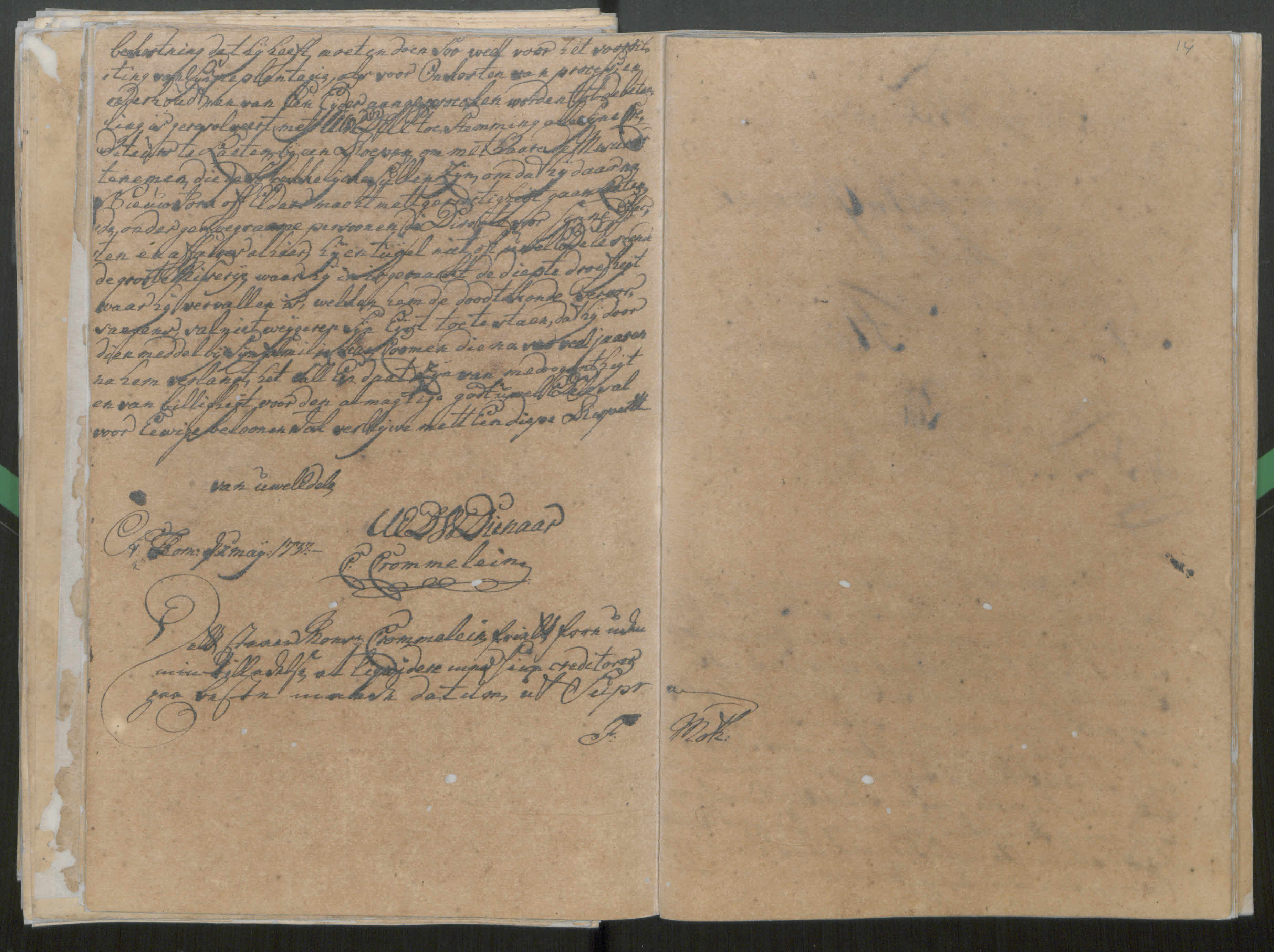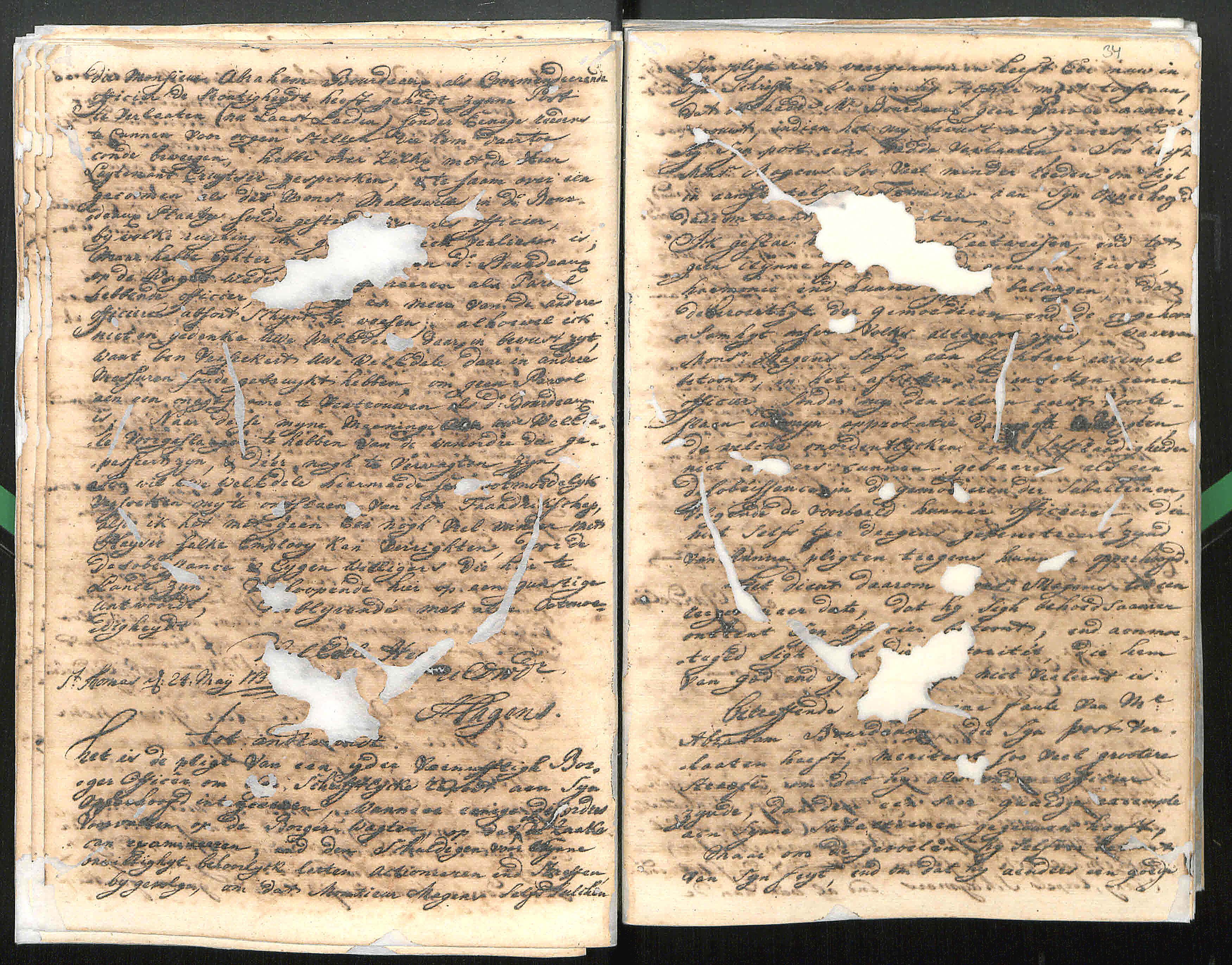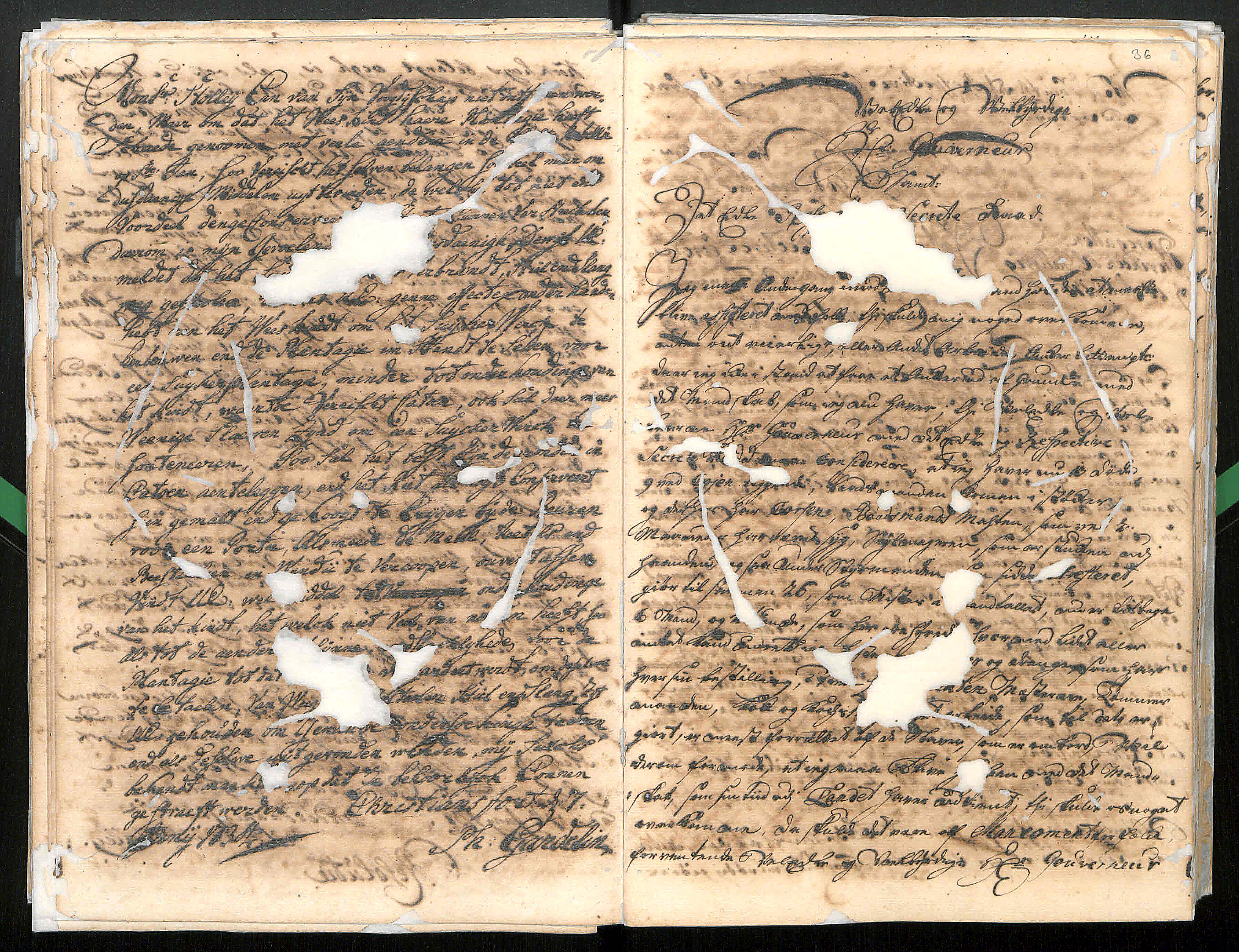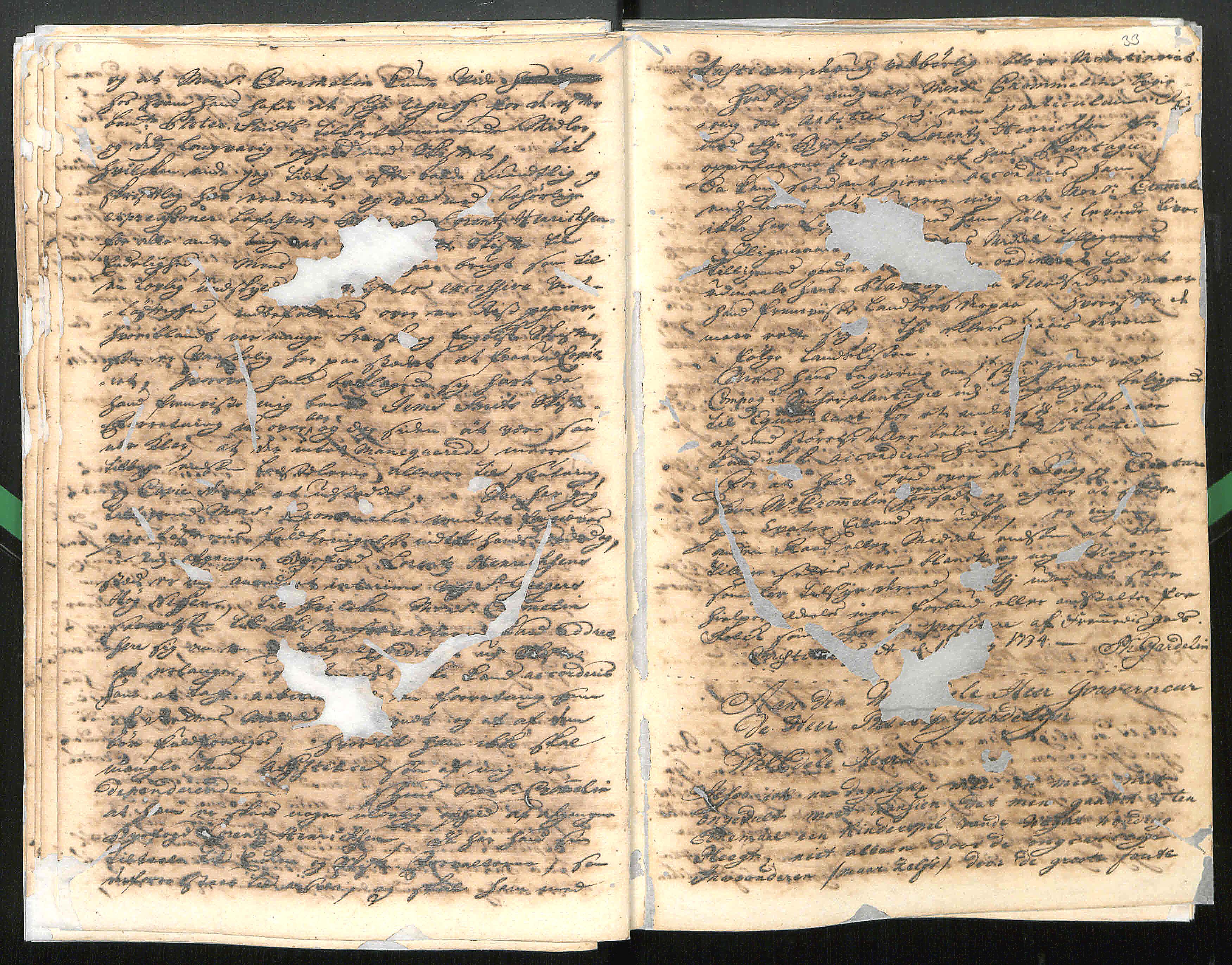 A Mr. Andreas T____________ mentioned. I will try to determine the surname. Few words relating to "Charles Crommelin" can be made out - mostly dates 23 Aug 1735 and so forth.
