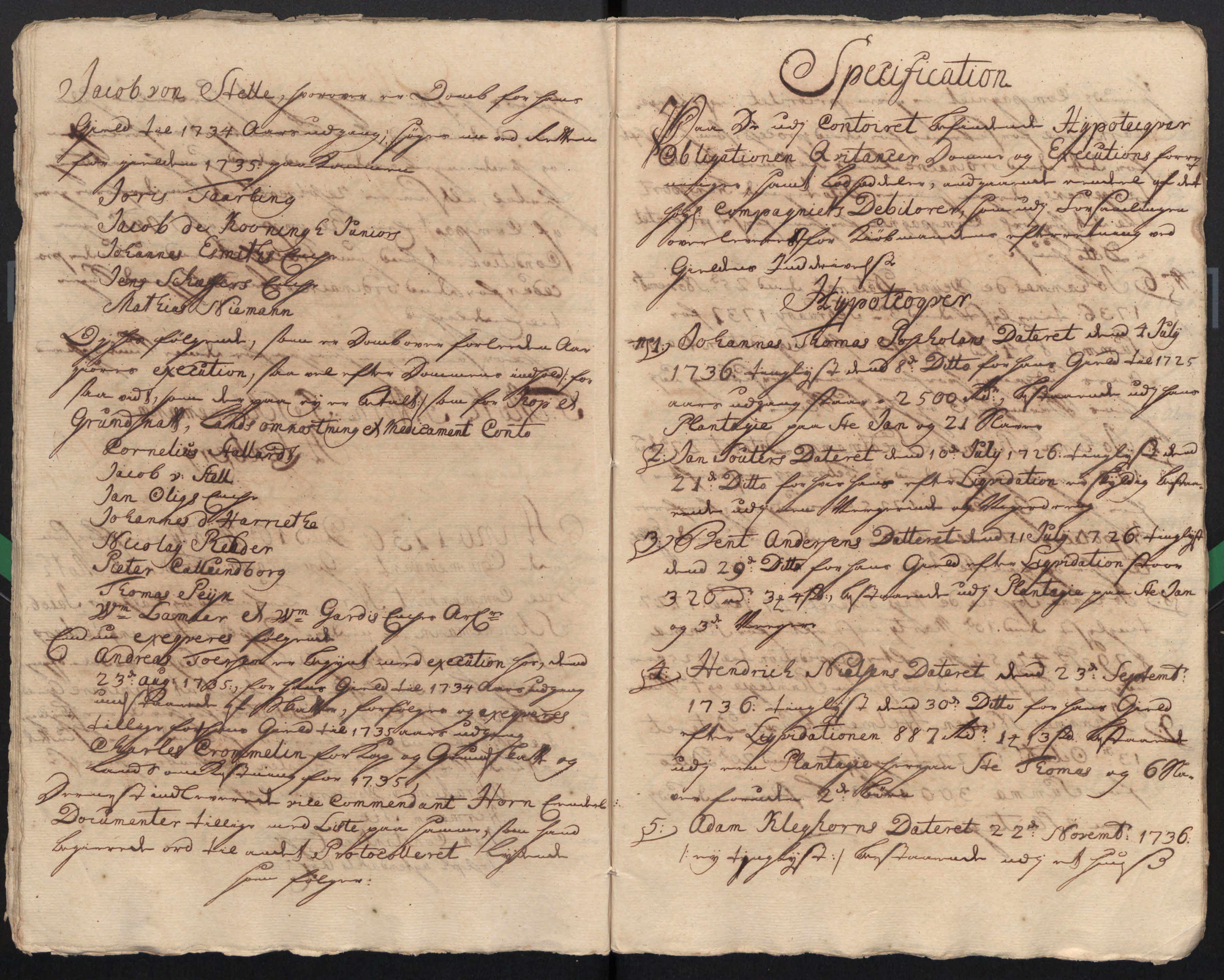 This summation includes the European debt to the heirs, paying for their part in the transaction in consideraion of their surrender to me of a sum of thirty thousand seven hundred rixdaalers worth of plantations and slaves evaluated at half their price and which I must maintain at great expense, considering also that I have to build sheds in the spring. Also, instead of claiming for interest one year behind, I am to be charged with numerous other claims. Below, for example, is a sum of 7600 before City Hall to be settled according to the inheritance list upon liquidation.