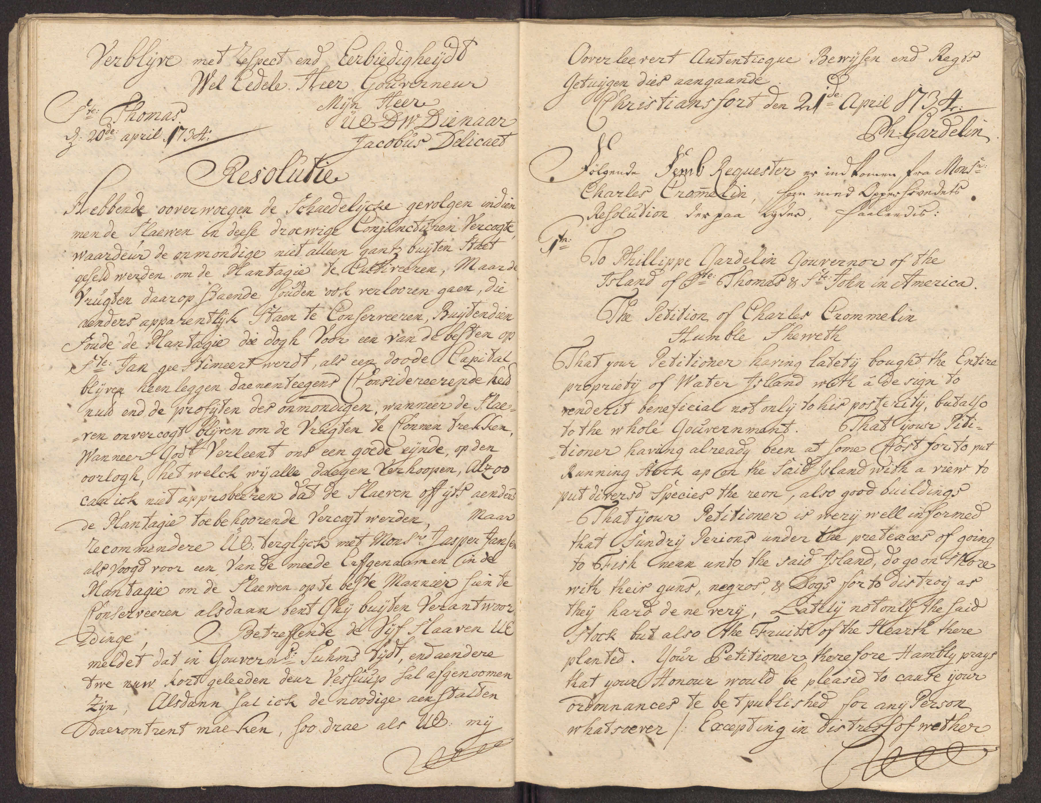 St. Thomas, May 8th 1734Resolution: - in Danish, undecipherable...