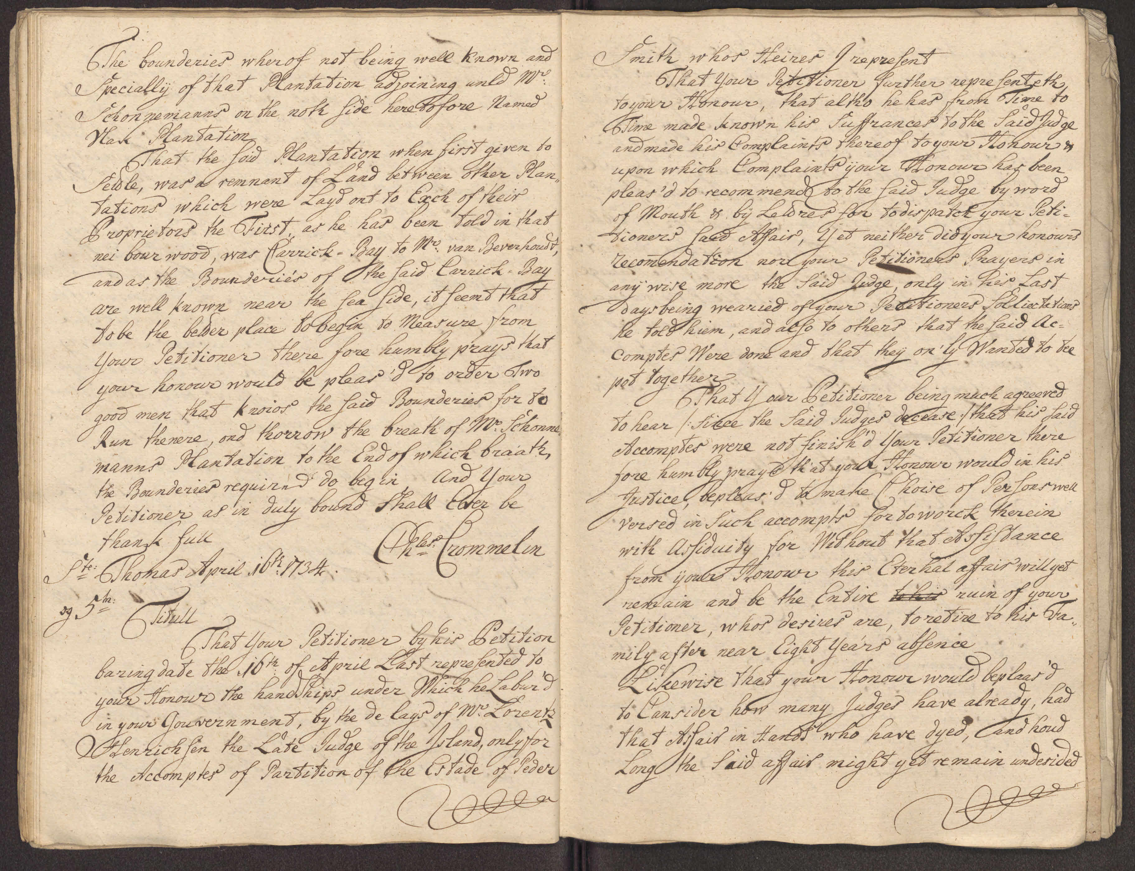 Your Petitioner therefore humbly prays that your Honour would be pleased to order two good men that know the said boundaries for to run thereon, and determine the breadth of Mr. Schonnemann's Plantation to the end of which both the boundaries required do begin, and your Petitioner as is duty bound shall ever be thankful.