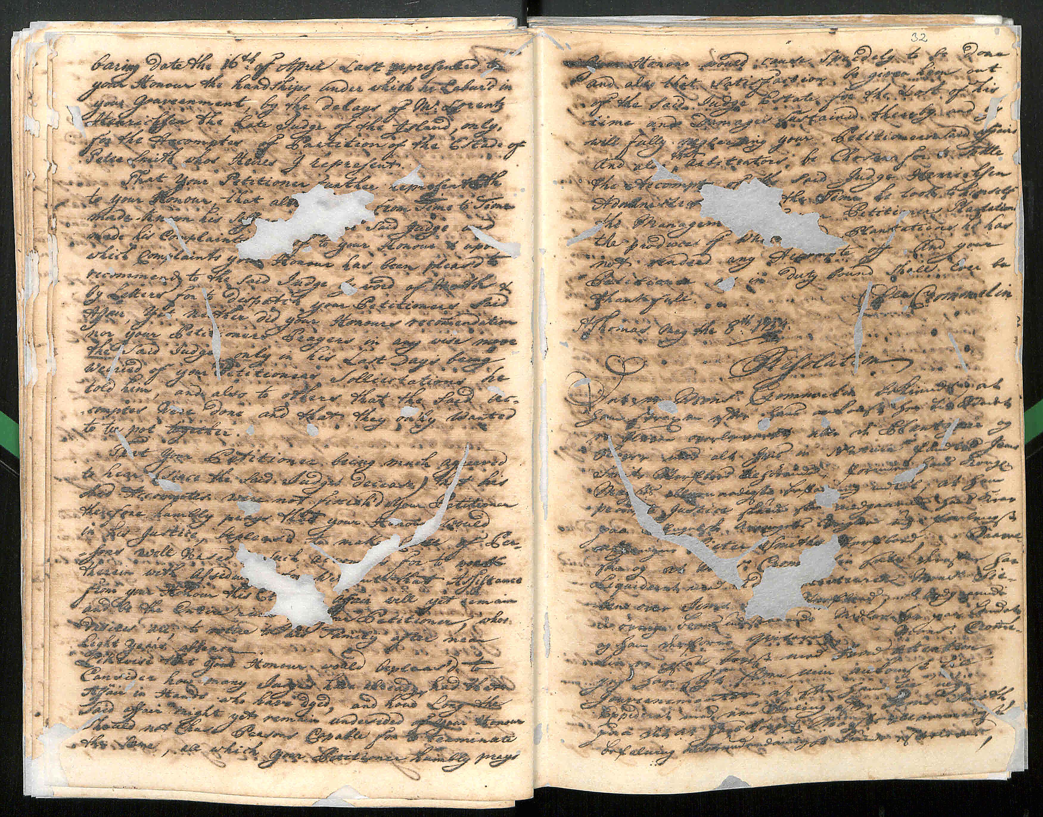 Page 32 - Click to enlarge.or for the Company Service not to go on shore of the said Island without first having obtained the liberty from the proprietor or his substitute, and this under such penalties also in your Honour's wisdom shall seem proper, and shall ever be thankful,