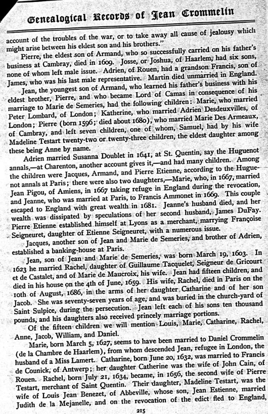 Crommelin Genealogy by Jacob Crommelin, 1712
