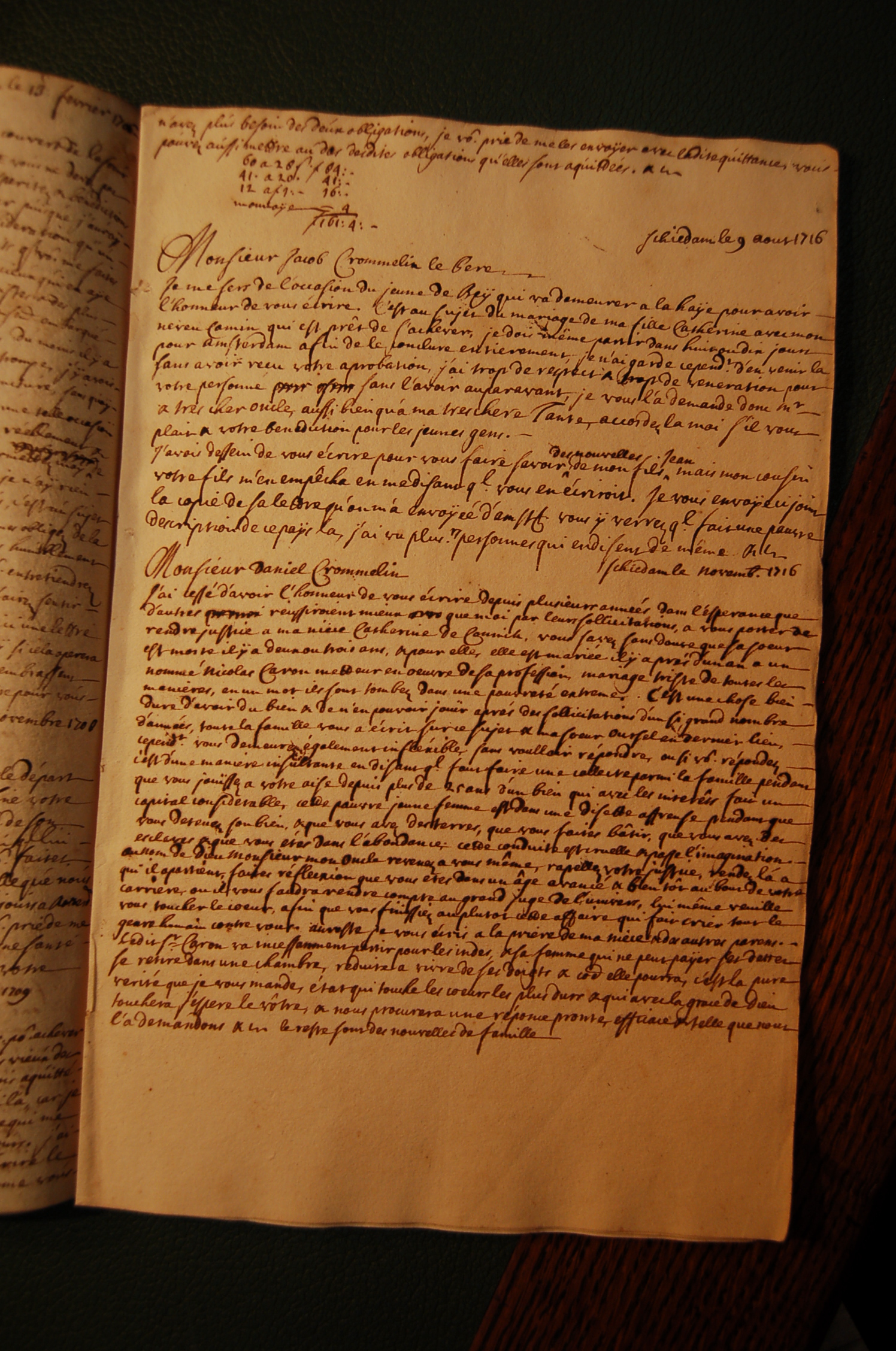 - copy of a letter written in November 1716 from Schiedam, Holland.
