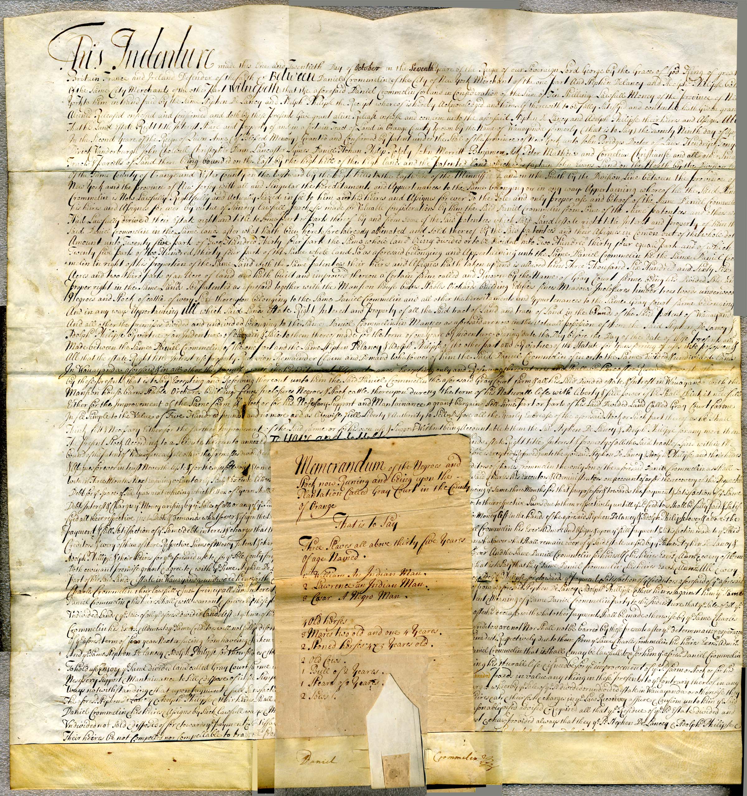 The 'lien' dated October 21, 1720 listing all of Daniel's assets (including immense tracts of land and 3 slaves)