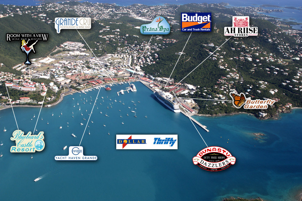 This is the main harbor of St. Thomas known as "Havensight". On the hill above the ships dock area was, I am now very sure, the site of Charles' plantation. Havensight is about 1 1/2 miles away from Charlotte Amalie. I am convinced this is the place because nearby was the West Indian Company warehouses, plantations and general operations alluded to by Charles as "Long Bay". Hauvnen in various land records of Charles time I thought meant haven or harbor. It all seems to fit.