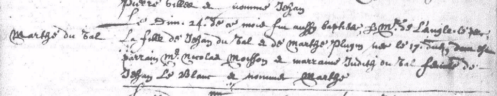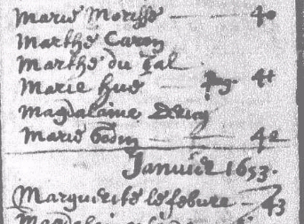 1652 November 17, birth of Marthe Duval, future wife of Jean de Coninck. She was baptized by pastor Samuel de Langle.