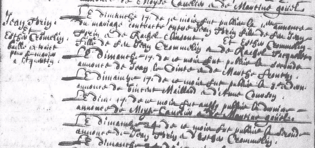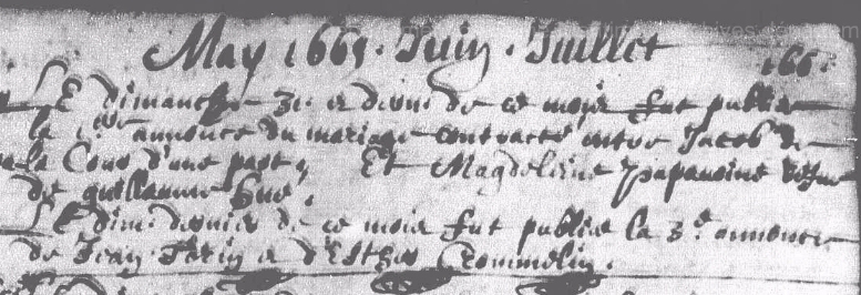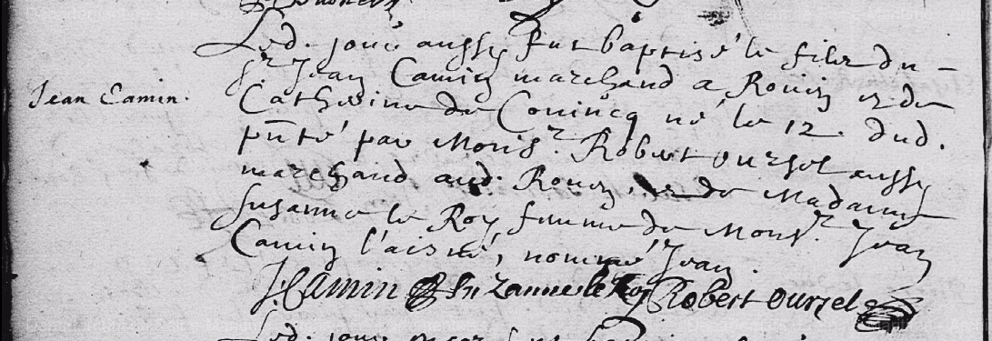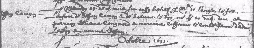 1655 September 20, birth of Jean Camin. He was baptized by pastor Samuel de Langle.