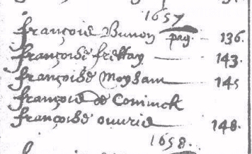 1657 October 23, birth of Francois de Coninck. He was baptized by pastor Samuel de Langle.