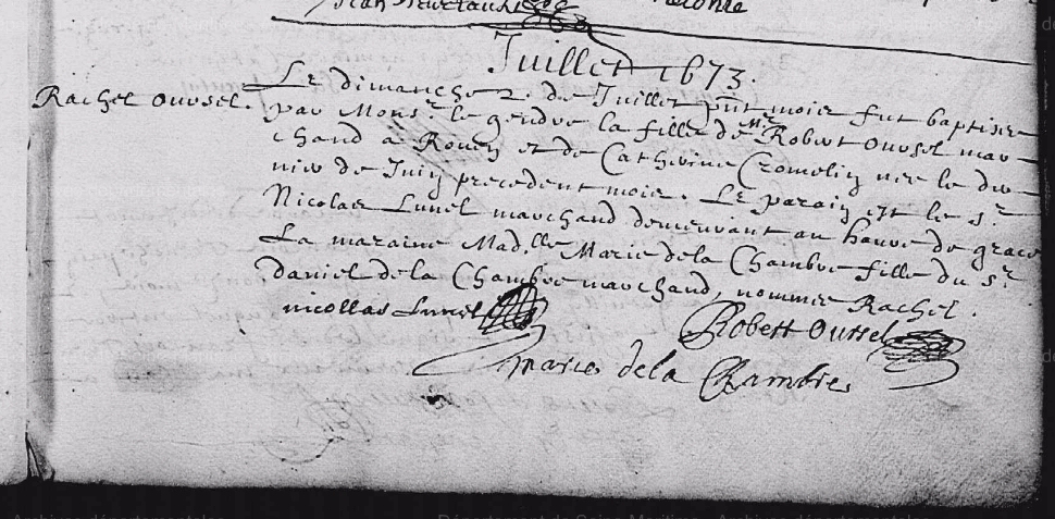 Three months later, on June 6, 1685 by order of the Parlement of Rouen, the Temple of Quevilly was condemned, and all exercise of the Reformed faith was prohibited in Rouen. The destruction of the Temple commenced that day and it was demolished down to its very foundations. The church registers, however, miraculously survived the centuries.Church registers source: Archives départementales de Seine-Maritime, Rouen