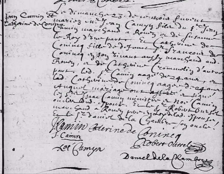 1655 January 29, birth of Catherine de Coninck, future wife of Jean Camin. She was baptized by pastor Lucas Jansse.
