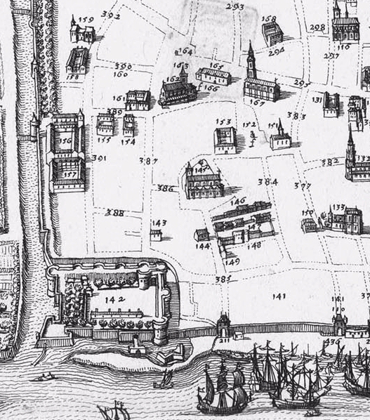 This 1620 (foreshortened) scene by Claude de Jongh shows the Porte St. Eloy at left.