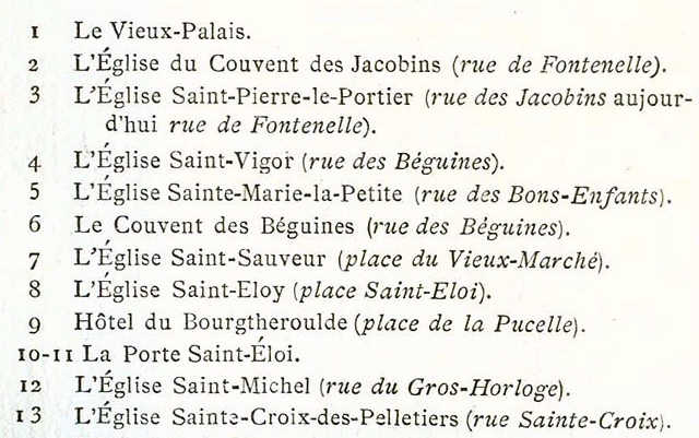 [In the book by Philippe Josse & Albert Sarrazin, see page 41 for a complete list of parishes in Rouen.]