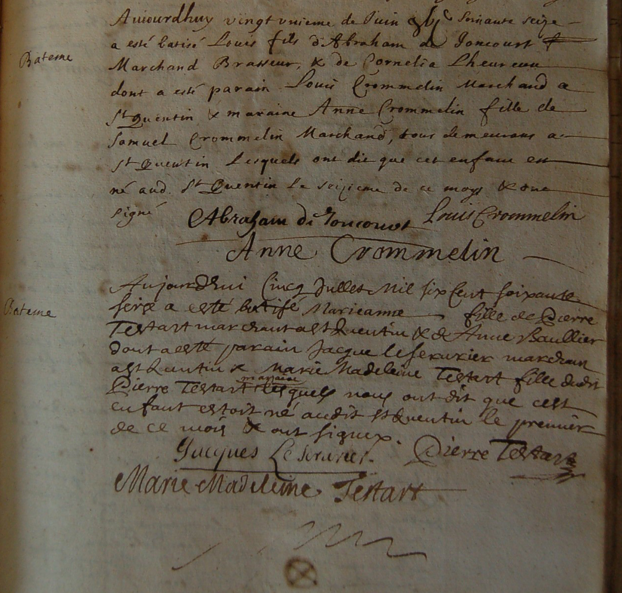June-July 1676 - Two family-related baptisms at Lehaucourt temple (St. Quentin).