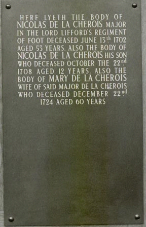 Charles CrommelinJean de Coninck was anxious to find out which family member started the rumour that caused his second engagement to fail. Frederic suggested that a rival suitor may have been interested in Marie Testard-Crommelin - someone who started the rumour in order to destroy Jean's reputation. Since Marie Testard-Crommelin married Nicholas de la Cherois five years later at the French Church in London's Threadneedle Street, someone partial to Nicholas may have been the one who started the nasty gossip. Perhaps he/she introduced Nicholas to Marie Madeleine Testard-Crommelin just when she was in the final stages of her engagement to Jean de Coninck. Nicholas de la Cherois was in the area around this time because in November 1688 he was in Exeter, England. For three weeks he was with William of Orange as part of the Dutch Army of the Glorious Revolution that toppled the Roman Catholic King James II.