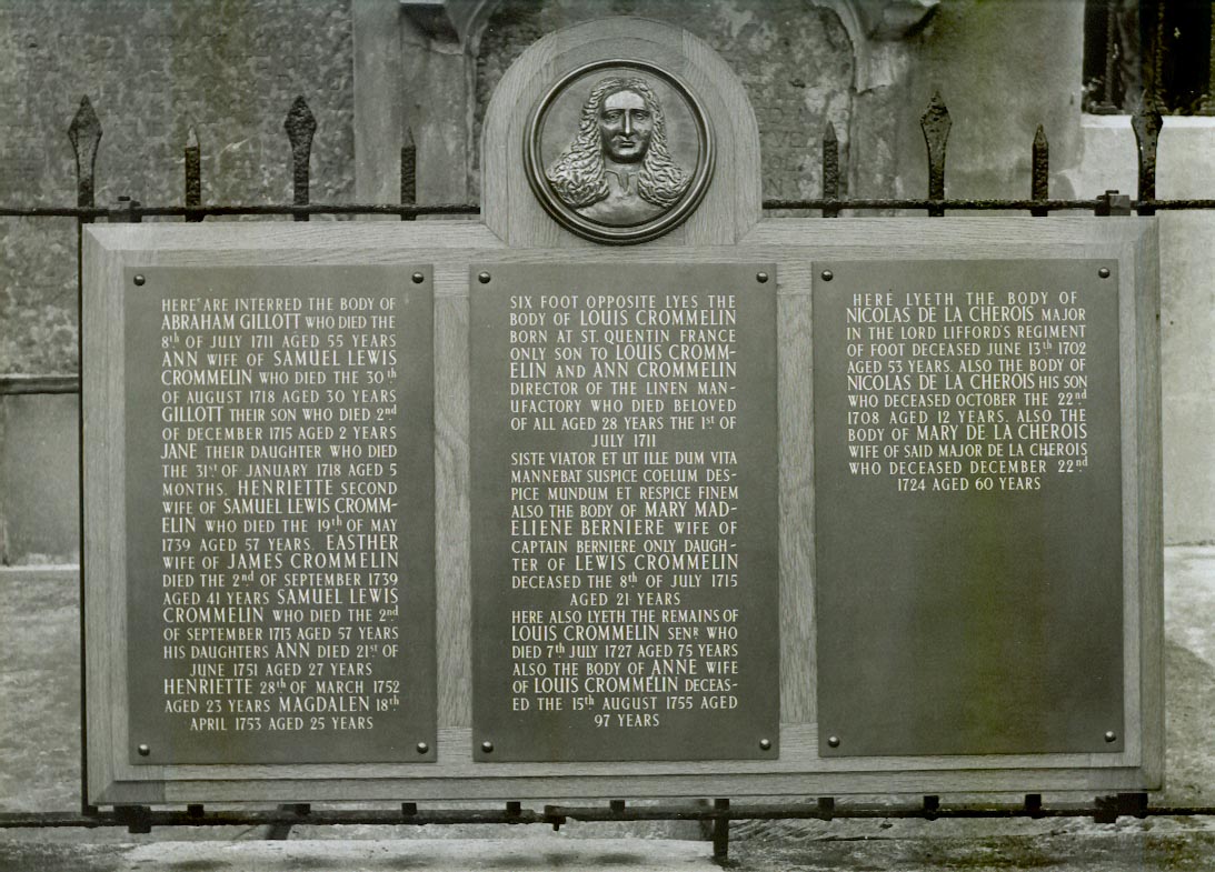 Crommelin tomb epitaph at Lisburn, Ireland.